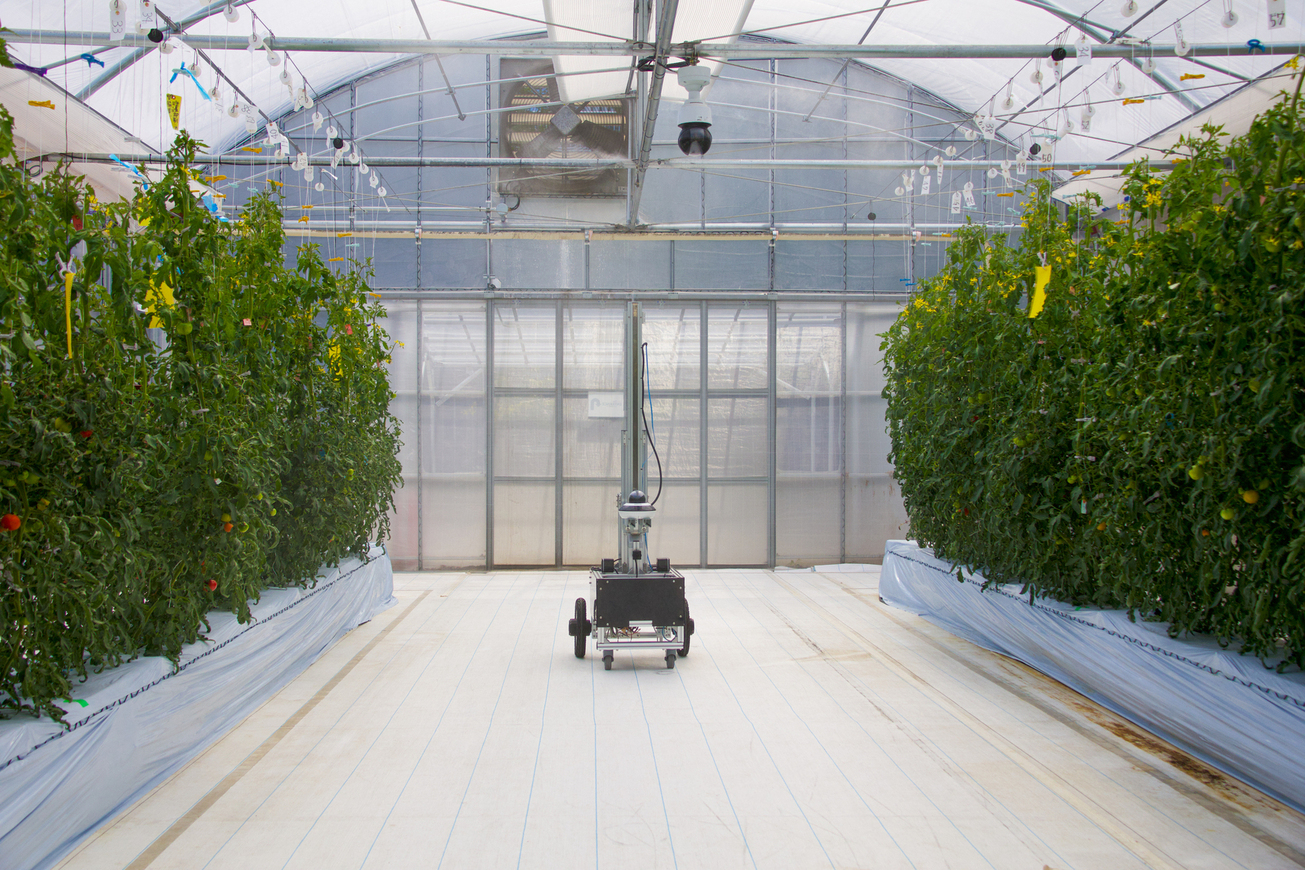 A 4K camera that can roam around the greenhouse.     Photo by Emi Takahata