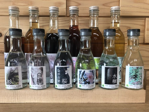 The FFPRI has found that alcohol made from cedar gives off a distinct woody aroma. Spirits made from cherry tree wood, meanwhile, contain floral components such as jasmine, so the fragrance is more flowery. White birch alcohol has components that give it the sweet and fruity aroma of a matured liquor.