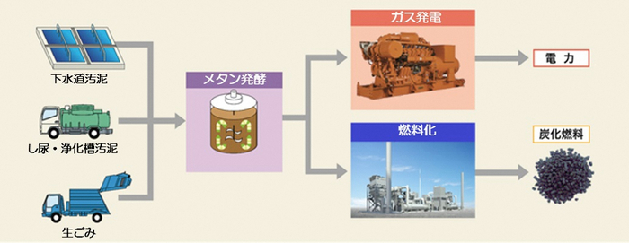 At the plant, sewage and food waste is fermented to produce methane gas and carbon fuel pellets.      Source: Toyohashi City Waterworks & Sewerage Bureau