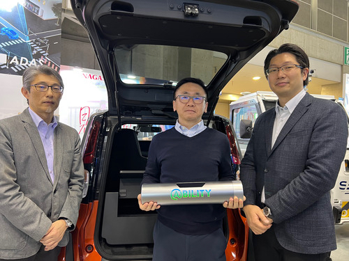 To realize that goal, it is developing handy hydrogen cartridges that could be stocked by supermarkets and other stores and easily plugged into vehicles. Each cartridge weighs around 8 kg, is a little larger than a 2-liter PET bottle, and could provide enough fuel for a small vehicle to run for 100 km.