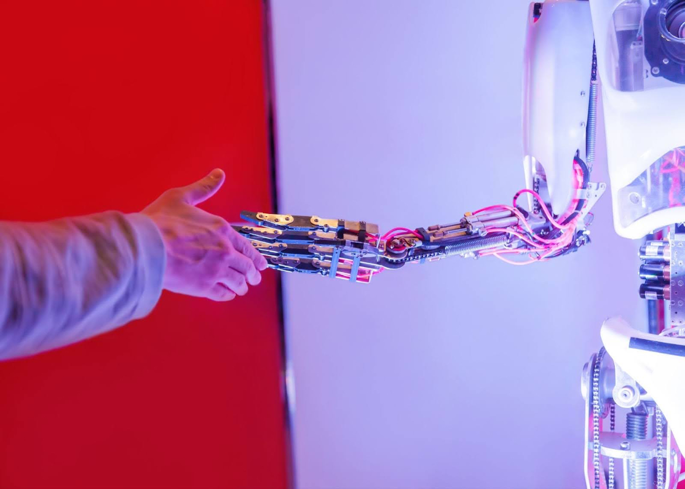 An illustration of cooperation between human and machine — a symbolic handshake marking the beginning of small-scale systems built on shared values of freedom and agency.  Photo by Envato