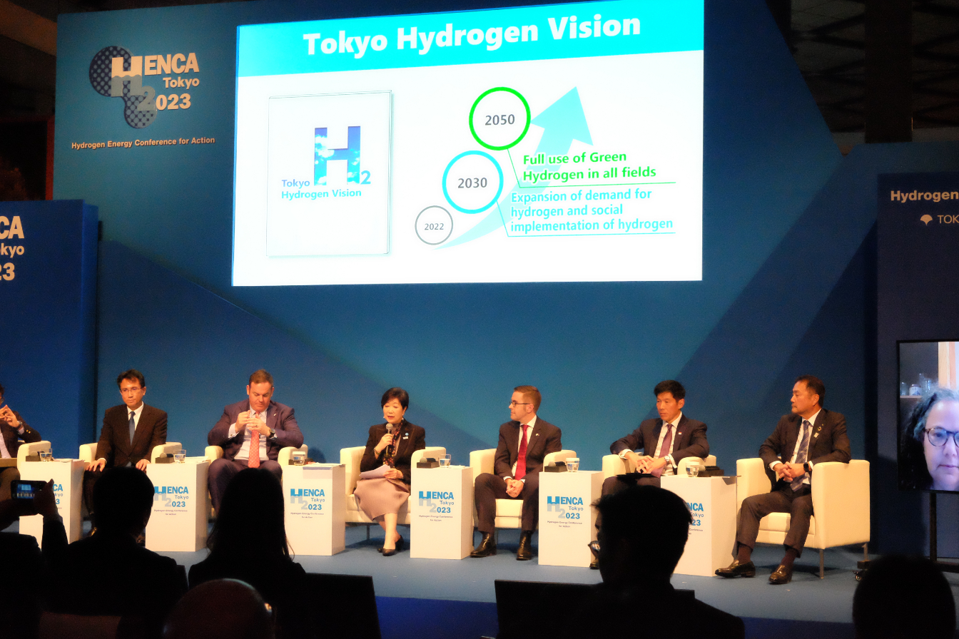 During her opening remarks at HENCA, Governor Koike announced the Harumi district along the Tokyo Bay coast will be reborn as a world-leading hydrogen town by spring 2024 to “show the world a new model for utilizing hydrogen energy.”