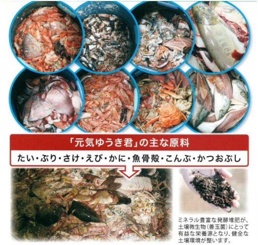 アラなどをつかった魚肥は他の地域でも作られているが、同社は外部からの加温、電熱を利用せず、特殊な高温発酵菌を使用し自己発酵熱(65℃にまで上げる)だけで有機物を分解する。市内外のスーパーや魚市場、鮮魚店、ホテル、飲食店等から回収した大量のアラに米ぬかと海藻を混ぜ、発酵菌(環境菌)を加え約10時間かけて分解発酵させる。さらに約2~3か月間の熟成乾燥を経て有機肥料が出来上がる。
