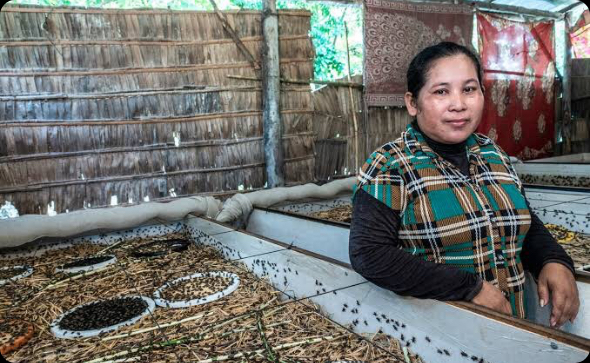 カンボジアに移住した葦苅さんは、現地の国際NGOなどの協力を得て、コオロギ生産の年間収支や設備などについて農家へのヒアリングを開始。すでにコオロギが食材として定着しているカンボジアでは農家が米や野菜づくりとの副業でコオロギを飼育しており、量産体制の土台は出来上がっていた。