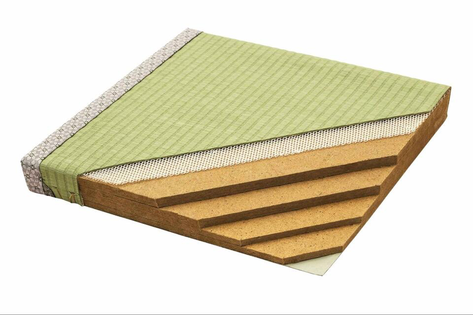 このシステムを使い、茶殻リサイクル製品の第1号が誕生したのは2003年。畳の中に入れる茶配合ボードを畳の専門商社と共同開発した。