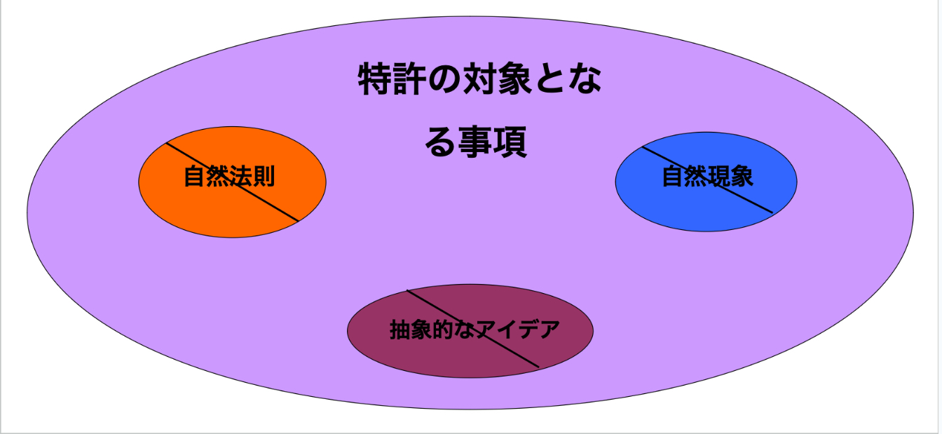 まず、米国で何が特許の対象になるのかを簡単に説明します。米国では特許の対象となる範囲は非常に広いですが、特許が認められない3つの分野が存在します。これら3つの分野とは、「自然法則」、「自然現象」、そして「抽象的なアイデア」であり、図2に示されています。