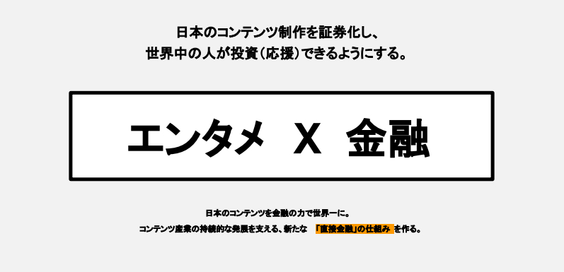 そこに自分のこれまでゴールドマンサックスでの業務で得た金融知識や経験を活かせたらと思い付き、地域や通貨の制約を超え、日本のコンテンツを支援する世界中の投資家、ファンやサポーターから資金を調達する仕組みを構築した。