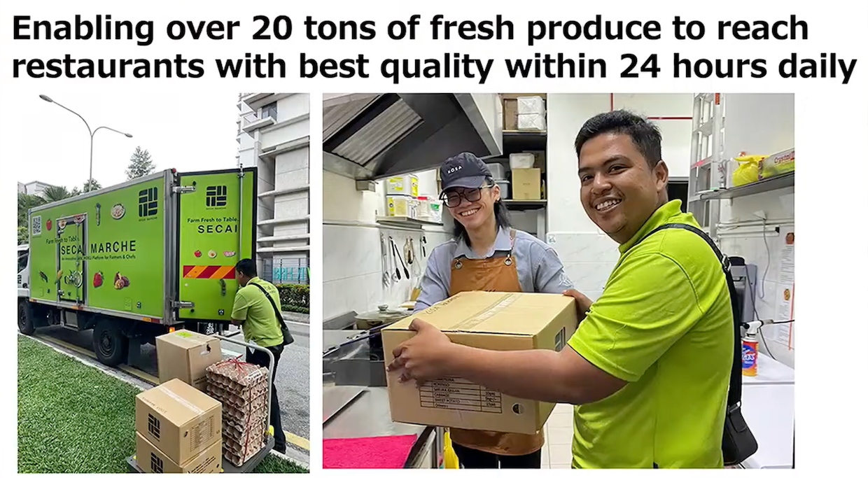 現在、日本、マレーシア、シンガポールなどから400以上の農家と4,000以上の商品を扱い、マレーシアの1,800以上のホテル・レストランに供給。ハイエンドレストラン市場の90%以上を占有し、2019年の創業以来、毎年200%の収益成長を維持している。昨年はシンガポール市場に拡大し、野菜・果物から水産物、加工食品、厨房機器まで事業を多角化している。