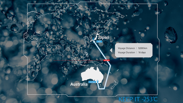 国立研究開発法人新エネルギー・産業技術総合開発機構(NEDO)による「褐炭水素プロジェクト」の資金援助を受けた今回の実証実験では、豪州の設備で水素を製造、液化工程を経て、体積を気体の1/800に圧縮。赤道直下の高温の状況でも零下253°の極低温を保持し、運搬できる貯蔵設備を新たに開発した。