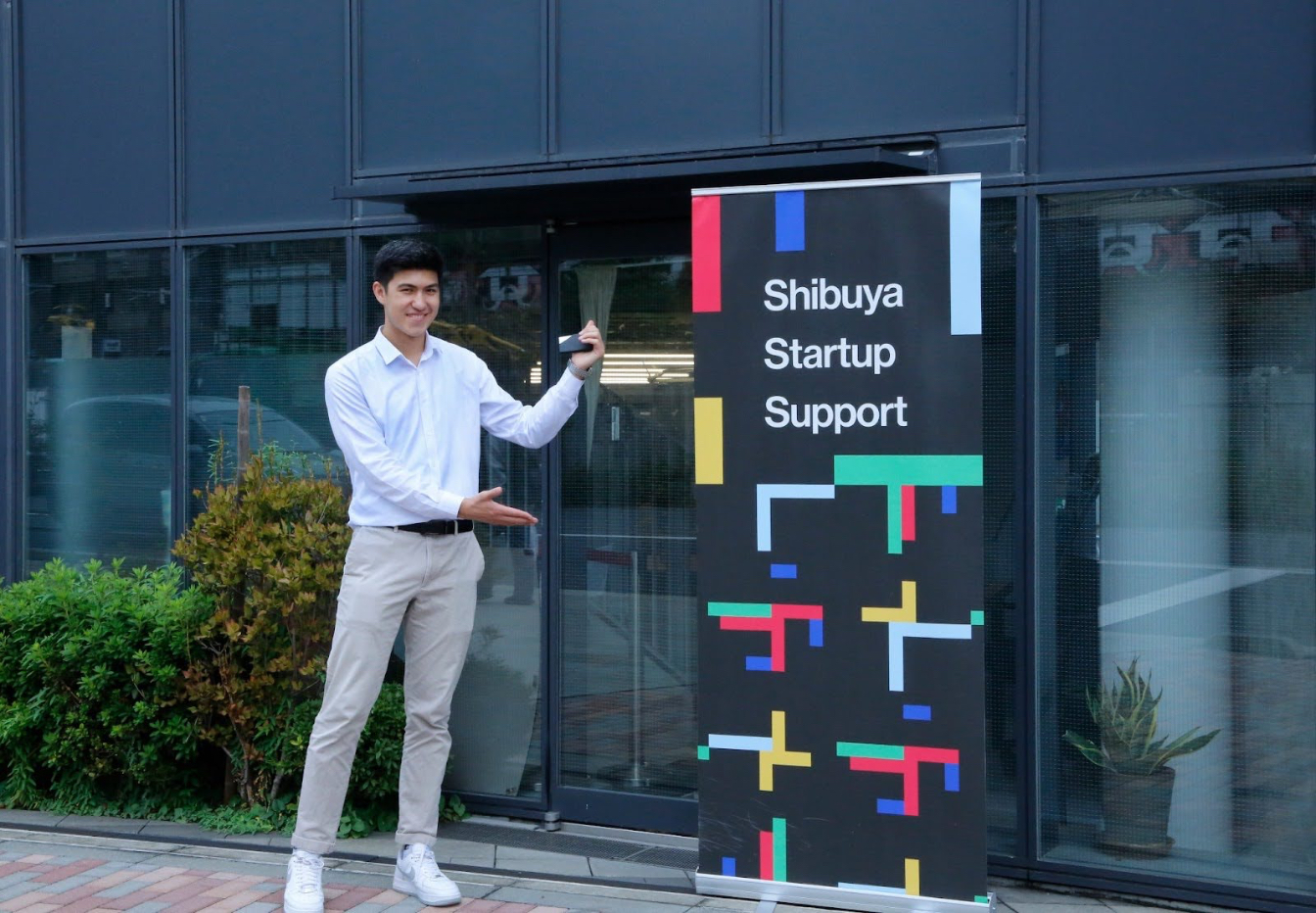 渋谷スタートアップ支援センターの前に立つシャフボズ・カイリロエフさん      J-STORIES撮影(以下同様)