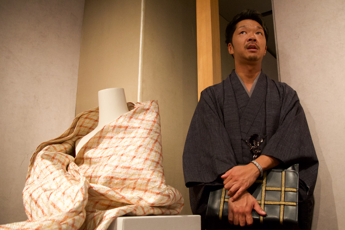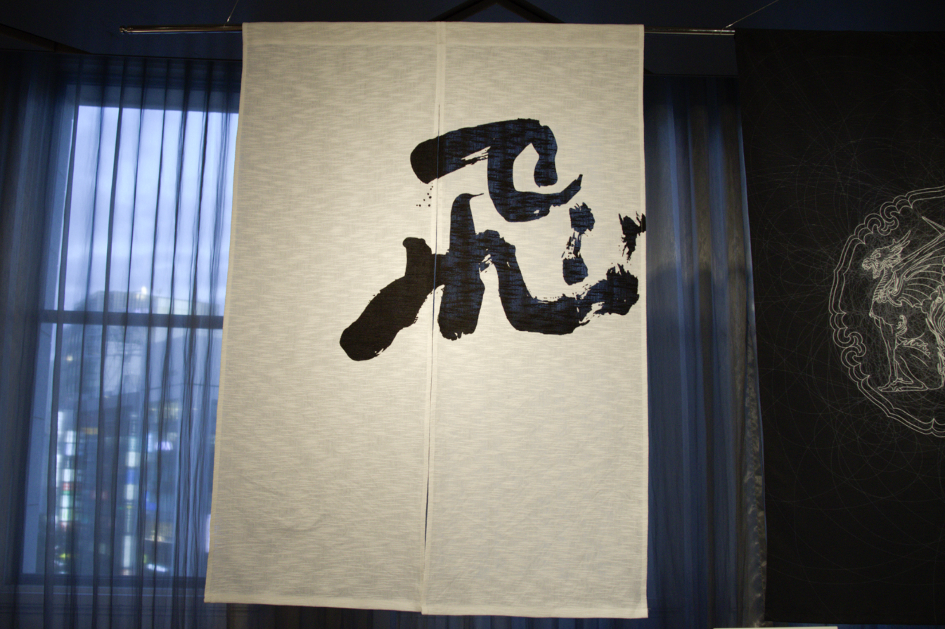 Nakamura Inc. started out as a kimono dyeing company based in the Kanda district of Tokyo from 1923 to 2006, before relaunching as a noren split-curtain maker. For the exhibition, it collaborated with interior art design company Carre Moji to produce a noren curtain with a kanji character reading “to fly.” The curtain was produced using traditional kimono dyeing techniques.