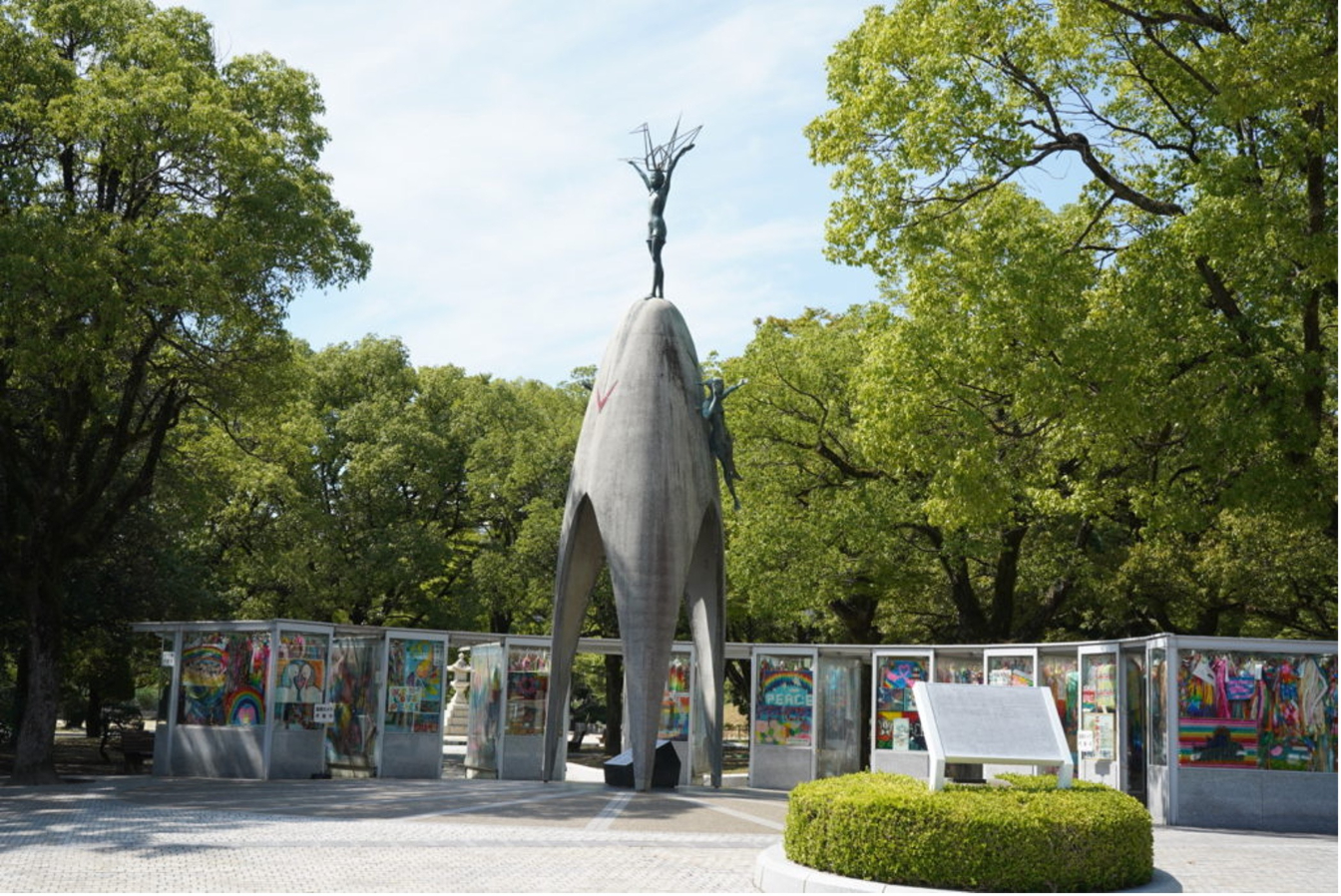 According to Hiroshima International School, the Crane Club’s activities began in 1985. The school received paper cranes from U.S. and Canadian schools that were made as part of peace education. Bringing the origami to the park was a temporary volunteer activity, but it developed into an annual student-run activity with a focus on peace activities. So far, the club has received cranes from schools in 37 cities in 14 countries, mostly in Europe and the United States.