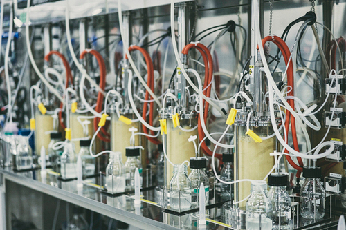 Small-scale microbial culture devices at Spiber’s HQ laboratory.      Source: Spiber