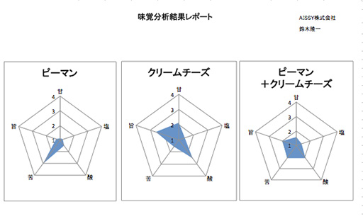 Humans experience five basic tastes, sweet, salty, sour, bitter and umami, each of which is perceived by “taste buds” on the tongue. The system uses taste sensors to measure the voltage generated by the “taste cells” that make up these taste buds in response to food, then display this as taste data.