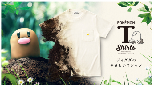 J-STORIES – Pokemon character Diglett is a peace-loving mole who likes to cultivate and enrich the soil in which he lives. So, it seems natural that he should give his name to a line of T-shirts that are biodegradable, meaning they can join the lovable earth-dweller at the end of their wearable life.