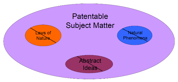 First, a brief overview of what is patentable in America is in order. In America, the universe of patentable subject matter is very large, but there are 3 subject matter areas that are not patentable. These 3 areas are laws of nature, natural phenomena and abstract ideas, as shown below in Figure 4.