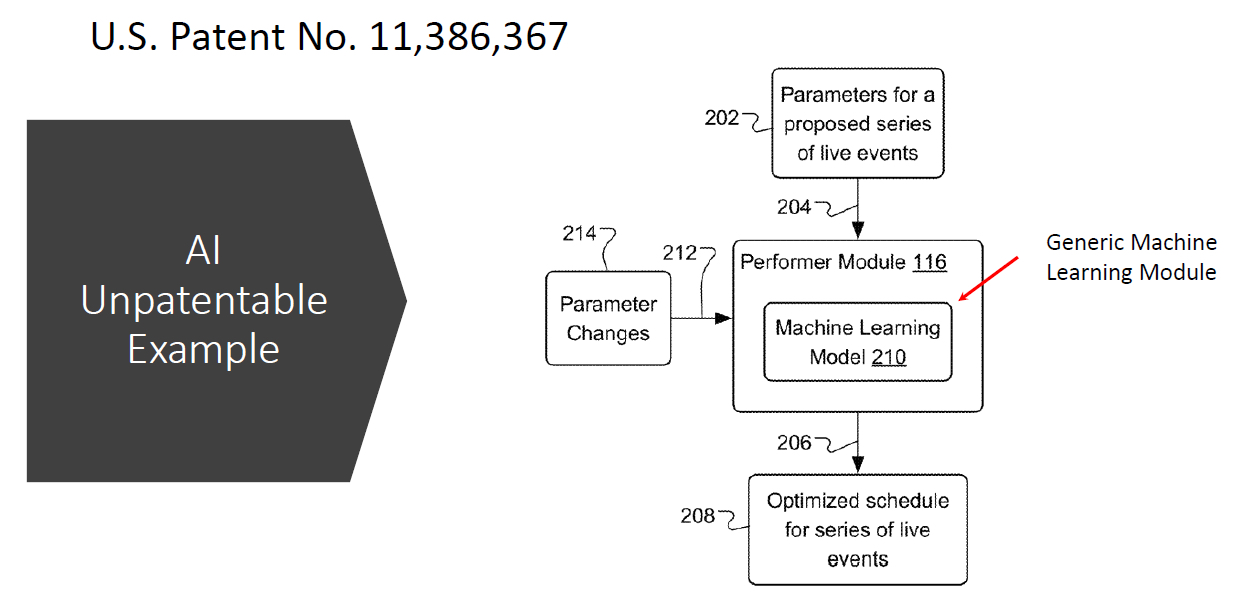 The Federal Circuit disagreed, explaining that “dynamic adjustments based on real-time changes are incident to the very nature of machine learning.” Recentive Analytics, slip op. at 12 (citation omitted). Therefore, Federal Circuit ruled that “[a]n abstract idea does not become nonabstract by limiting the invention to a particular field of use”. Recentive Analytics, slip op. at 14 (citation omitted). The holding of the Recentive case is summarized in Figure 7, below.