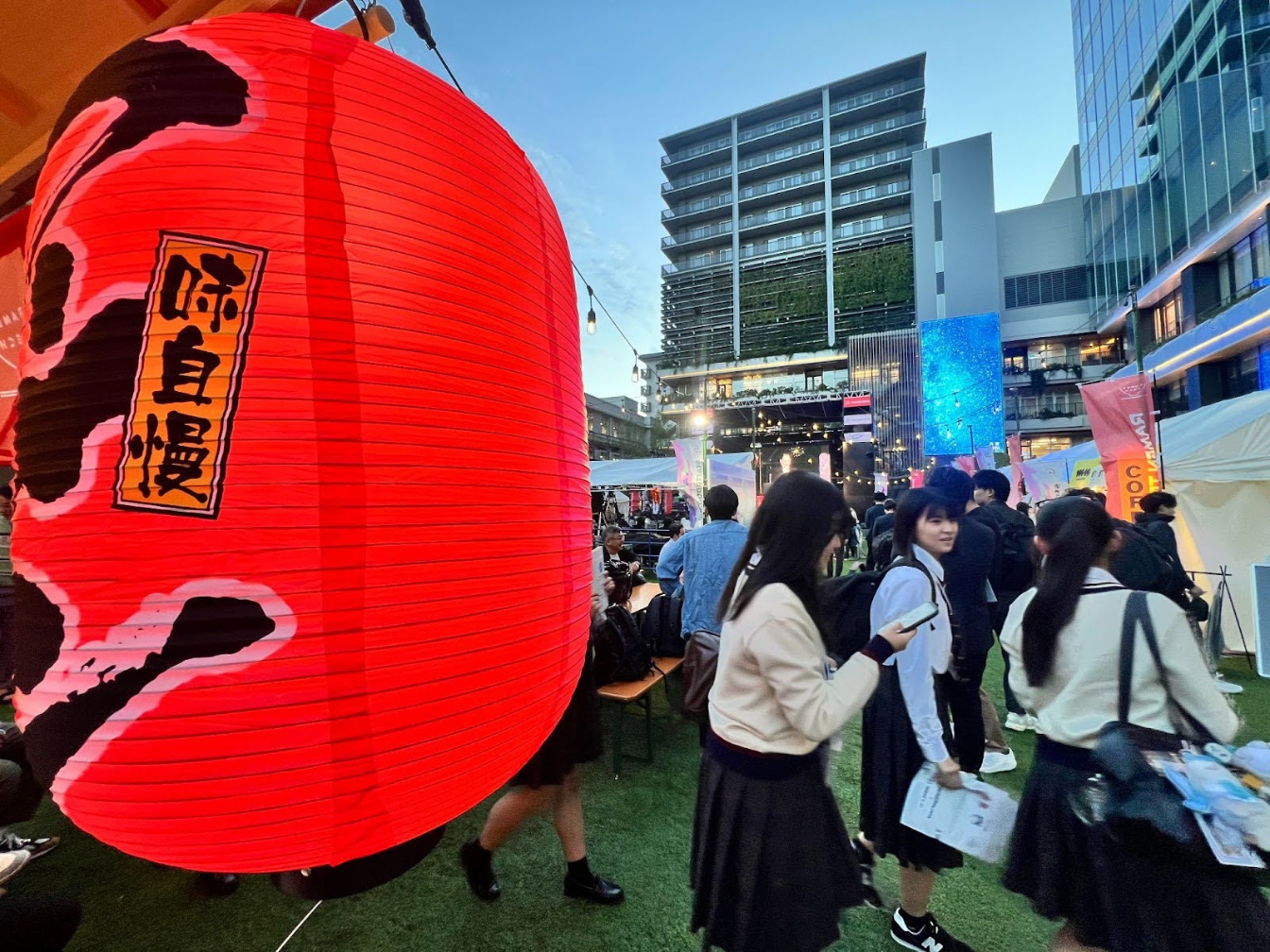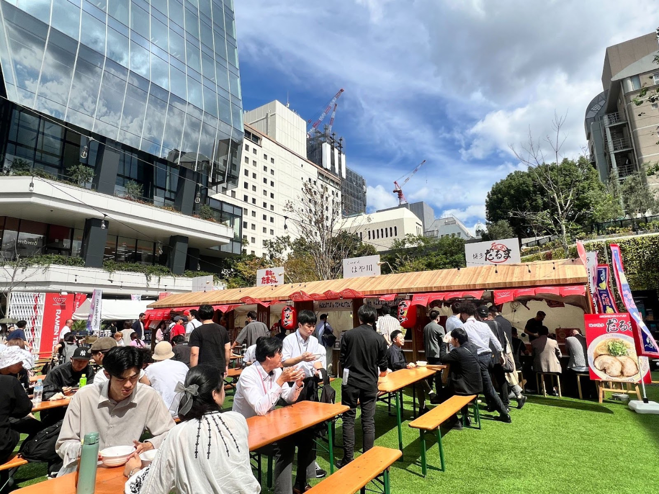Attendees gather to visit the local ramen vendors in the outdoor space during RAMEN TECH. The atmosphere attracted not only startup stakeholders but also local families and high school students, making it a community-oriented and international gathering.      Source: J-Stories (same below)