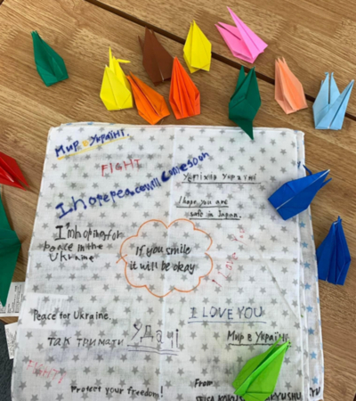 Writing letters to Ukrainian children also brought the reality of the war home to the Japanese students.