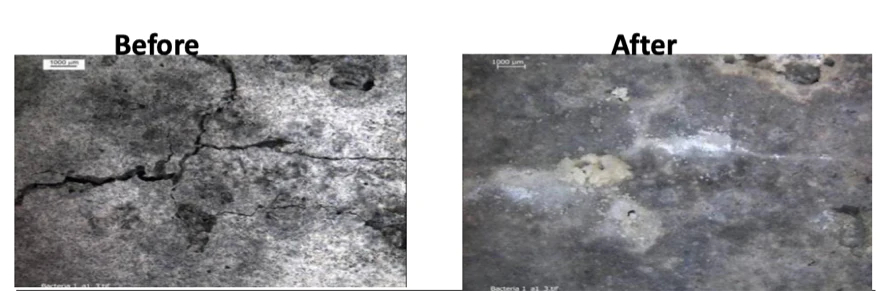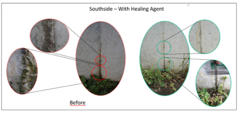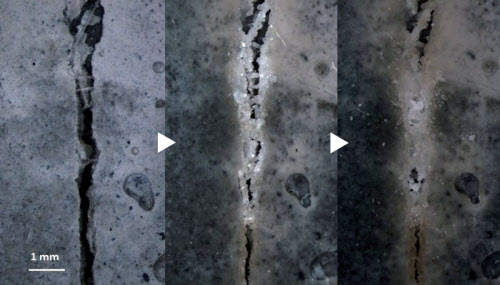 Here comes the Basilisk HA self-healing concrete and its wunder-bacteria. When a crack appears, the bacteria immediately fill it. Because it activates at the early stages of the crack, undetected during inspections, it can repair the concrete before it worsens.