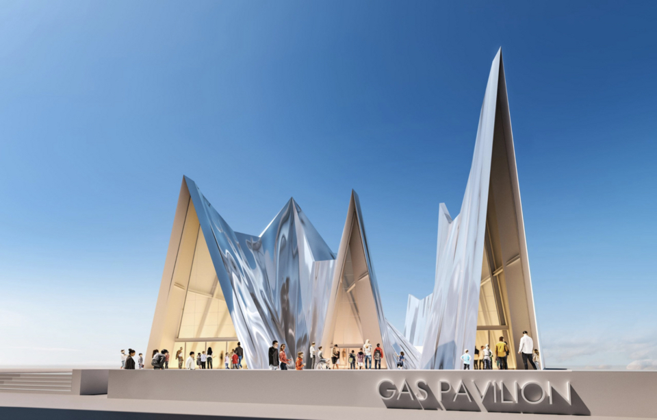 A design image of a building made with Spacecool membrane for the Expo 2025 in Osaka.     Source: The Japan Gas Association