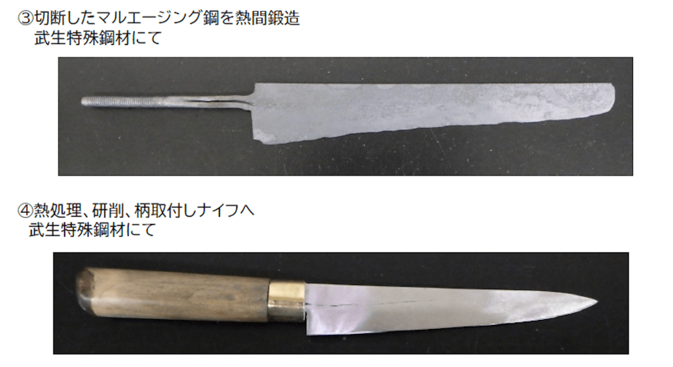 At present, fencing swords are not manufactured in Japan. Takefu Special Steel explained to J-Stories that during this test processing of knives it was able to understand the characteristics of the special maraging steel used for fencing swords. The company intends to look at using its own special processing technology to reuse the material for a range of purposes.