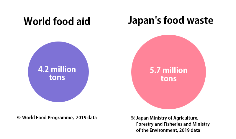 Now the amount of waste is 1.36 times more than food aid.      Source: J-Stories
