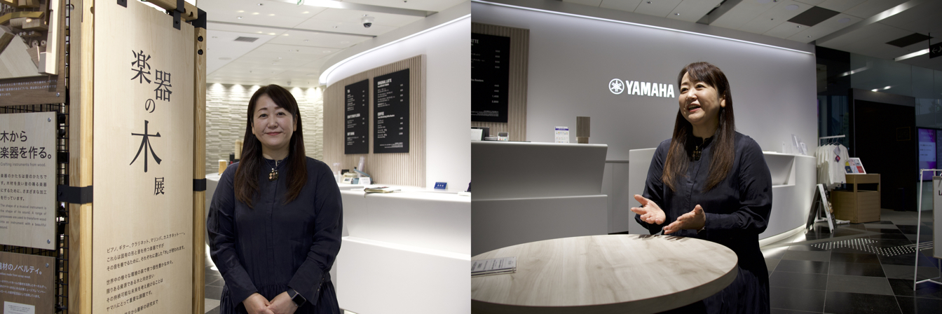 These guitars are displayed at the Yamaha store in Ginza as part of the “Wood of Instruments” exhibition from September 2023 until May 2024. Tomoko Kimura, of the marketing development unit in Yamaha, who is in charge of this exhibition, explained the purpose of the exhibition.