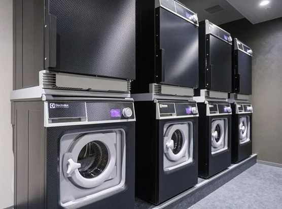 Since no detergent is used, it also saves water by reducing the number of rinses to one, cutting water consumption by about 30% compared to conventional laundromats. It also shortens laundry time and saves on electricity costs.