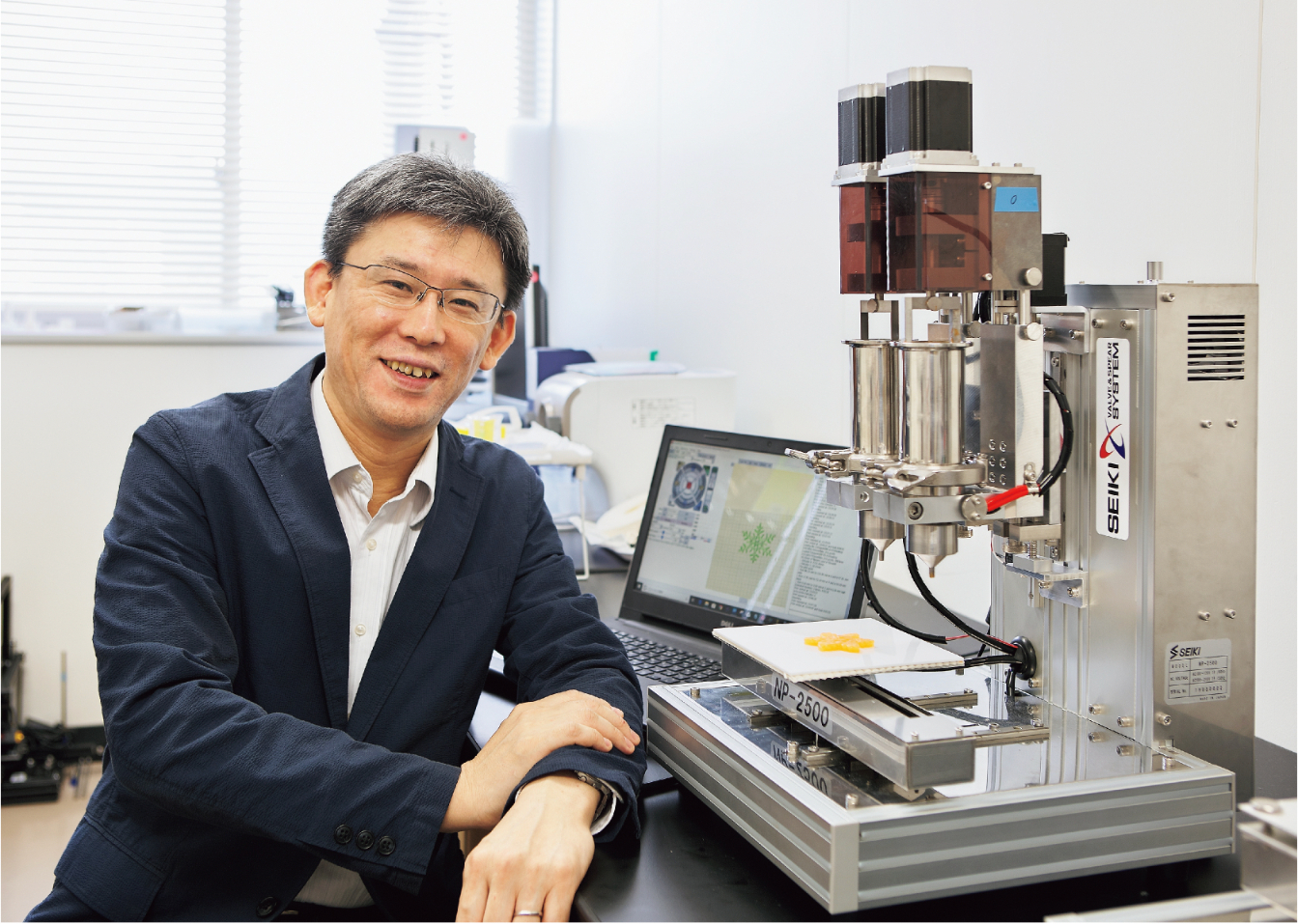 食品3Dプリンターの開発を進めている山形大学の川上勝准教授は、たんぱく質などの研究に3Dプリンターを使う中で、野菜や肉、魚のゲルを使ったやわらかい食品作りのアイデアが浮かび、地元企業との共同で食品3Dプリンターを開発した。