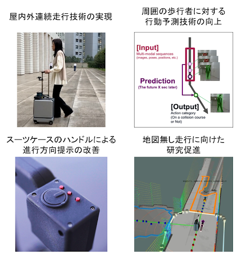 目前,AI行李箱在遇到人群擁擠或障礙物複雜的情況下,仍存在數據檢測困難與挑戰,因此尚未實現商品化。然而,已經在大型購物中心、新千歲機場、未來館等室內設施,還有從未來館到最近車站的戶外空間,進行了由一般使用者參與的導航技術實證實驗。