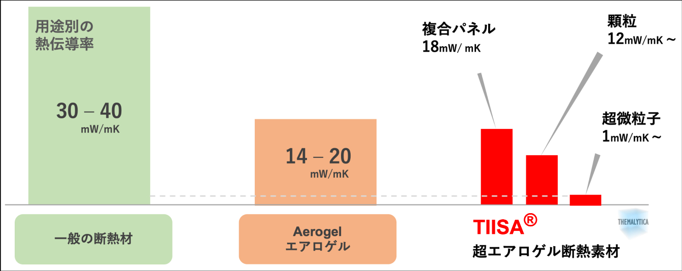 Thermalytica採用了創新的設計方法。透過封閉多孔質(具有無數細孔)結構材料中部分細孔,大幅抑制因氣體流動造成的熱傳遞。傳統隔熱材料中,氣體會在孔隙間移動傳遞熱量,但TIISA®因具有封閉孔隙而能阻斷這種移動,因此隔熱效果比傳統氣凝膠隔熱材料顯著提升,最多可減少30%的能源損失。