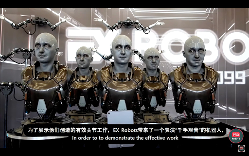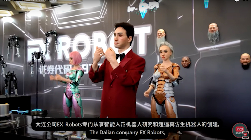 EXロボット:表情が変化し、手足がリアルに動くインテリジェント・ヒューマノイドやリアルな生体ロボットを専門とする大連のロボット企業。本物の人間の動きや表情をコピーできるロボットを作っており、学校教育や保育など様々な応用が考えられる技術だという。