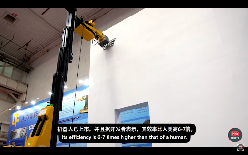 DaFang AI:すでに市場に投入されている壁塗りロボットで、1時間で50平方メートルの表面を処理できる。窓やドアを認識して、不必要なところは塗らない。ロボットの作業効率は人間より6~7倍高い。