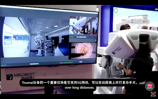 MedBot:すでに数十の病院で使用されている腹腔鏡手術ロボット。外科医が無菌エリアの外に座って手術を行うことができ、医師のストレスを軽減できる。既に今年100件以上の手術を行った。5Gネットワークに対応しているため、複雑な手術を遠距離で行うことも可能だ。昨年6月には、新疆ウイグル自治区の外科医が5000キロ離れた病院で手術を成功させた。