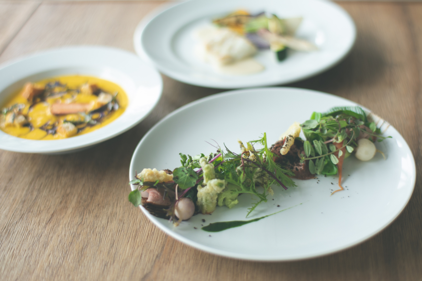 農場內養殖本莫羅魚(ホンモロコ)與泉鯛(イズミダイ)等魚類,同時種植香草等蔬菜,並作為午餐套餐的一部分,在一樓的咖啡廳供應。小林女士表示:「這不僅是自產自銷,更進一步可稱為『大樓產大樓銷』。我們能夠根據主廚的需求,以少品種多品目方式進行種植與養殖,避免浪費,這也是我們的一大優勢。」