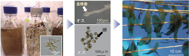 為了恢復消失的藻場,鹿島應用了「自由配偶體技術(フリー配偶体技術)」,這是一種利用預先採集的母藻,在燒瓶內保持浮游狀態以增殖其配偶體(相當於海藻的種子)的培養方法。透過此技術,鹿島成功確立了從配偶體大量培育昆布(アラメ)幼苗的方法。這種技術不同於直接移植幼苗或散布孢子的傳統手法,而是能夠在原本完全消失的藻場中重建海藻生態,為藍碳再生提供全新的可能性。