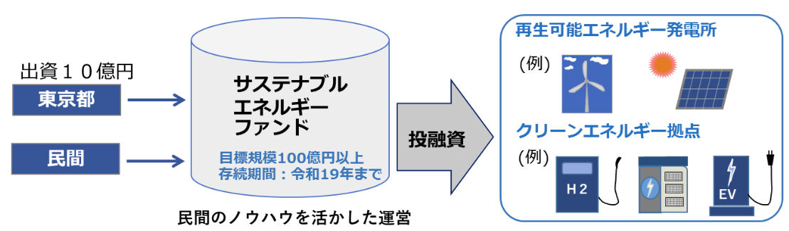 東京都在2022年3月向永續能源基金投資10億日圓。未來計畫廣泛募集民間企業投資,目標將基金規模擴大至100億日圓。