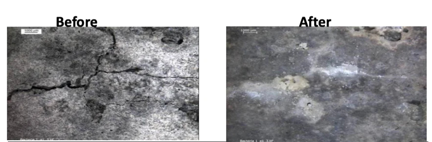 同社の「Basilisk HA自己治癒コンクリート」は、特殊なバクテリアを配合しており、ひび割れが起こると、そのバクテリアが活性化して、ひびを自動的に埋めて、自己修復を行う。通常の点検では発見が難しい初期の段階で、修復が行われる為、ひび割れの悪化や、致命的な鉄筋のサビなどに至る前での修復が期待できる。