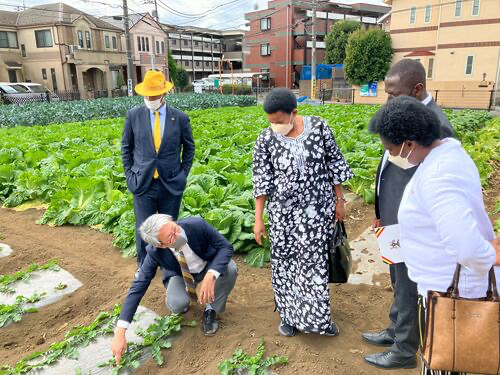 今年11月,駐日烏干達大使訪問了使用Skeepon的靜岡縣藤枝市迷你番茄(小番茄)農場,視察該產品在應對高溫環境方面的效果。該農場過去由於夏季溫室內溫度超過40°C,不得不暫停生產。然而,自去年9月至今年11月的1年間,導入 Skeepon後,收穫次數從每年4次增加至5次,總產量更是提升至原本的 2 倍。