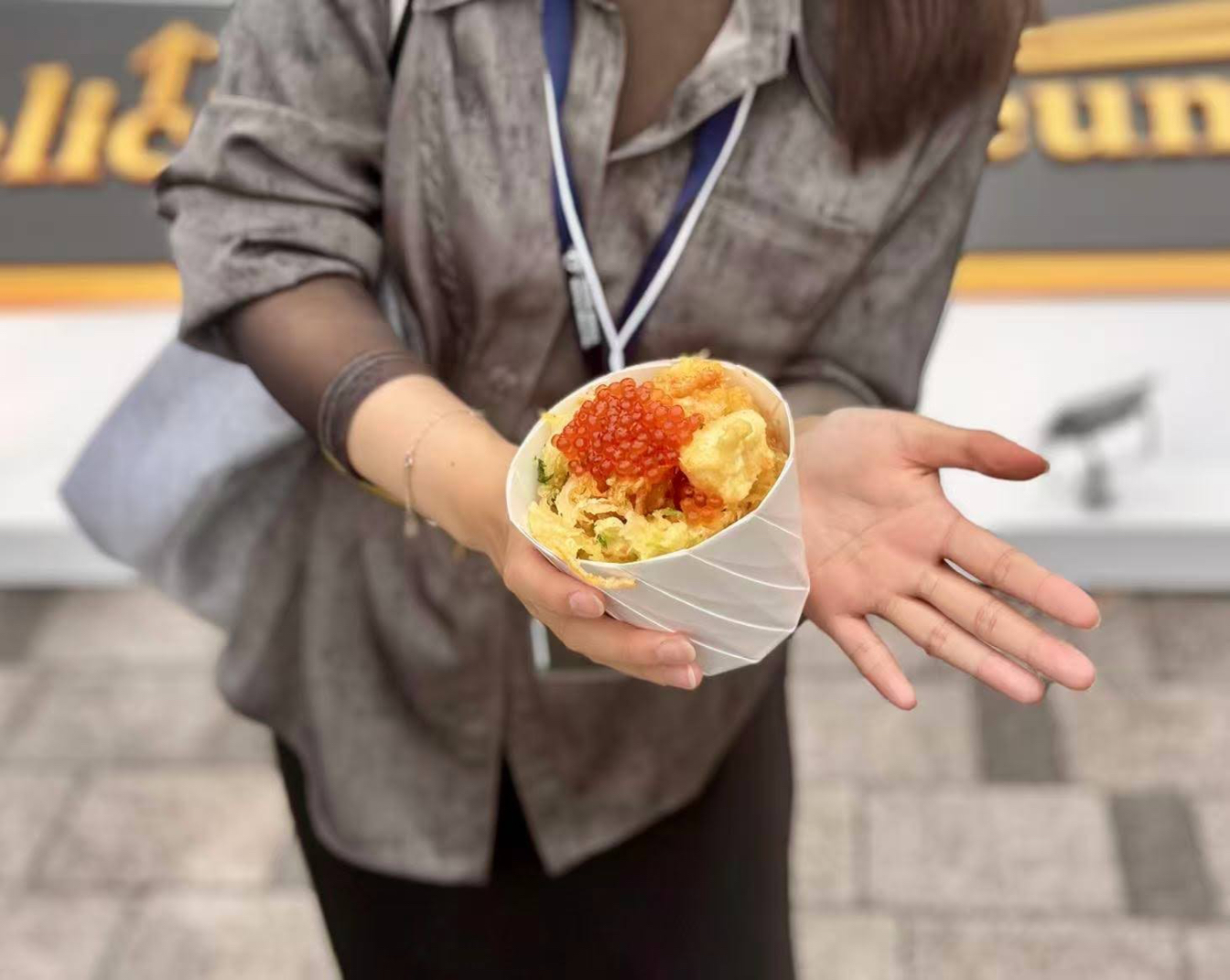 此外,所提供的日本料理中,除了傳統做法,還有受到海外料理影響的獨特創新料理,這點也令人印象深刻。例如,我有機會品嚐了名為「海鮮散炸天丼」的料理,其創新的發想讓我印象深刻。一般的天丼是將蝦子、茄子、南瓜等天婦羅整個盛裝的經典做法,但這道料理採用了「散炸」的手法,將各種海鮮切小塊混合油炸,製成碎散口感的海鮮炸物。與米飯的一體感增強,有著類似中國「拌飯」的親切感。