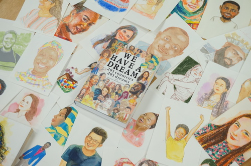 自らの夢を語る世界の若者たちのメッセージを本にした「WE HAVE A DREAM」。北米、中南米、アフリカ、欧州、アジア、オセアニアの合わせて201カ国から届いた文章が500ページ以上にわたって、ひとり一人の大きな写真とともに掲載されている。英語版も出版されており、貧困層を助けるマイクロ・クレジットの普及者、ムハマド・ユヌス氏ら世界の有識者からも賞賛の言葉が寄せられた。